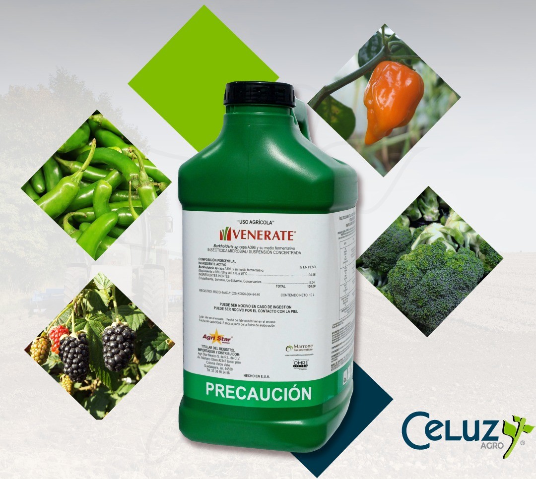 Venerate es un insecticida biológico que contiene sólidos de la fermentación de Burkholderia sp, para uso de plantas ornamentales, césped y cultivos comestibles. Venerate funciona principalmente como un veneno estomacal; aunque, también cuenta con actividades de contacto, directo contra insectos de cuerpo blando.